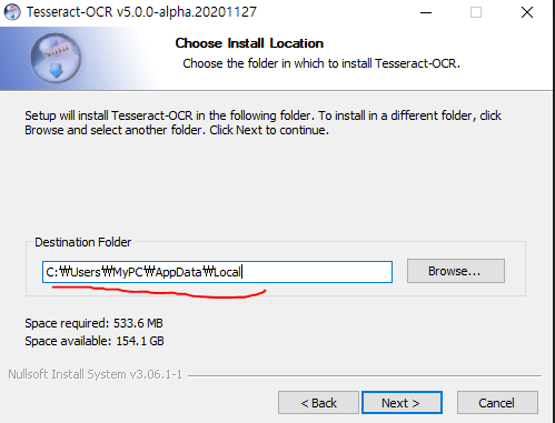 pytesseract.pytesseract.tesseract_cmd = r'C:\Users\사용자_이름\AppData\Local\tesseract.exe'